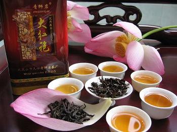 1385年,明朝洪武十八年,舉子丁顯上京赴考,路過武夷山時突然得病,腹痛難忍,巧遇天心永樂禪寺一和尚,和尚取所藏大紅袍茶泡與他喝,病痛即止。考中狀元之后,前來致謝和尚,問及茶葉出處,得知后脫下大紅袍繞茶叢三圈,將其披在茶樹上,故得“大紅袍”之名。狀元用錫罐裝取大紅袍帶回京城。狀元回朝后,恰遇皇后得病,百醫無效,便取出那罐茶葉獻上,皇后飲后身體漸康,皇上大喜,賜紅袍一件,命狀元親自前往九龍窠披在茶樹上以示龍恩,同時派人看管,采制茶葉悉數進貢,不得私匿。從此,武夷巖茶大紅袍就成為專供皇家享受的貢茶,大紅袍的盛名也被世人傳開。傳說每年朝廷派來的官吏身穿大紅袍,解袍掛在貢茶的樹上,因此被稱為大紅袍。